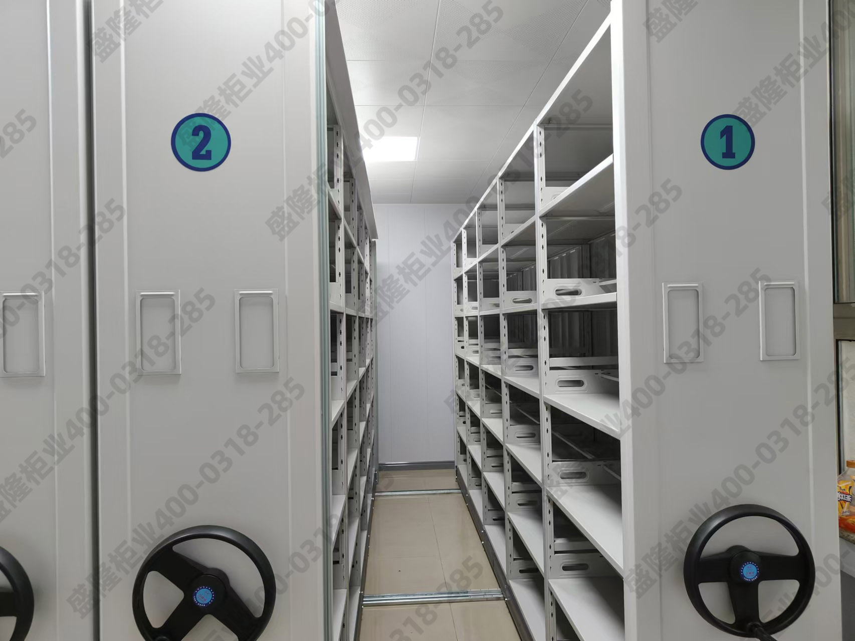 1.庫房空間測量:精 確測量檔案室的空間尺寸,包括長度、寬度和高度。要考慮到房間內的柱子、門窗、通風口等障礙物的位置,避免密集柜安裝后影響正常使用。同時,預留足夠的通道空間,一般主通道寬度不應小于 1.2 米,輔助通道寬度不應小于 0.8 米,以確保人員和搬運工具能夠順利通行。